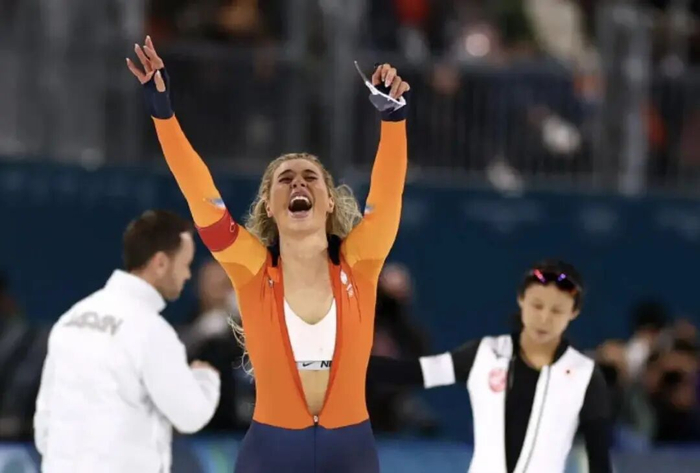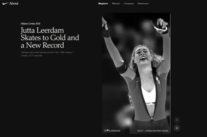 荷兰速滑名将尤塔·莱尔丹以破奥运纪录的成绩冲过终点线后,激动地拉开了身上那件橙色FILA紧身服的拉链,露出里面雪白的、印着巨大耐克勾子的运动内衣。