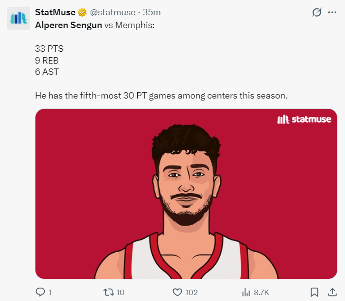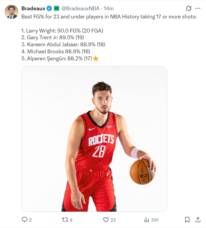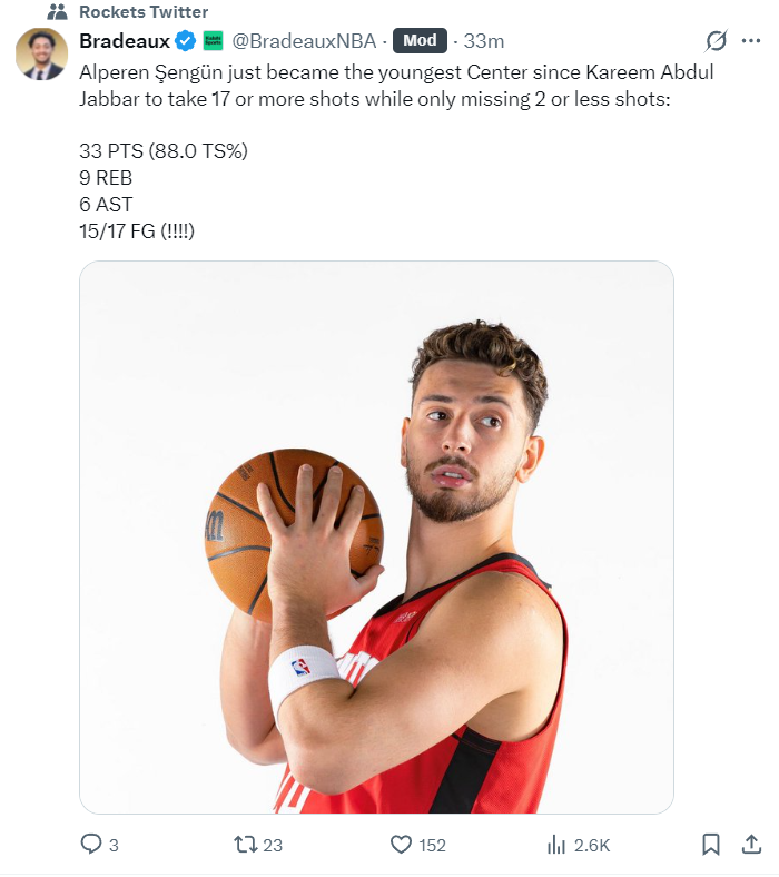 这场比赛申京17中15的表现也引发了休斯顿媒体的热议,他也一战创造多项纪录: