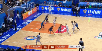 杜锋叫出暂停紧急换回徐杰,萨林杰低位强攻加克拿到广东本节第一分,庞兹压哨抛投,胡明轩接林杰助攻飚进底角三分,段睿骐强突张皓嘉打进上篮,庞兹抛投再进,四川6-5再一次打停广东。