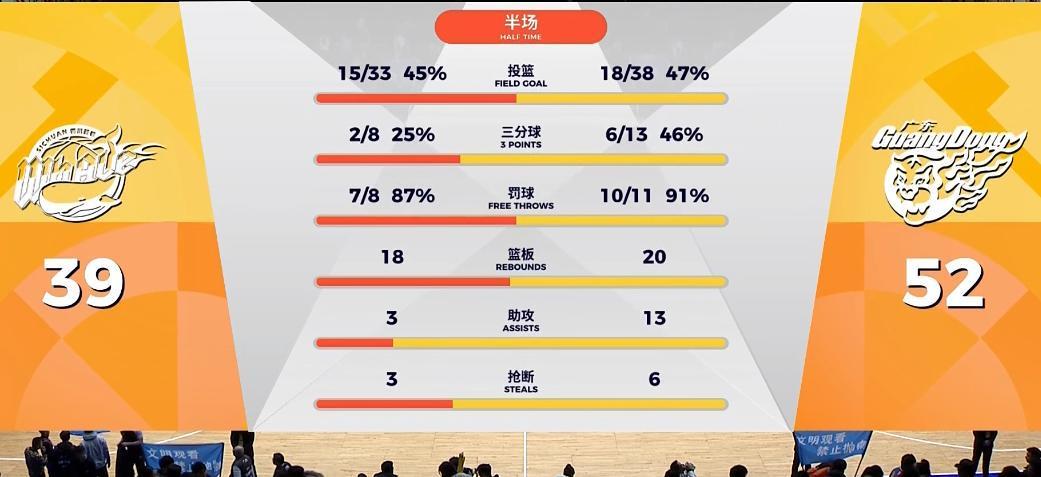 最终,广东队客场以104-76大胜四川,结束2连败。